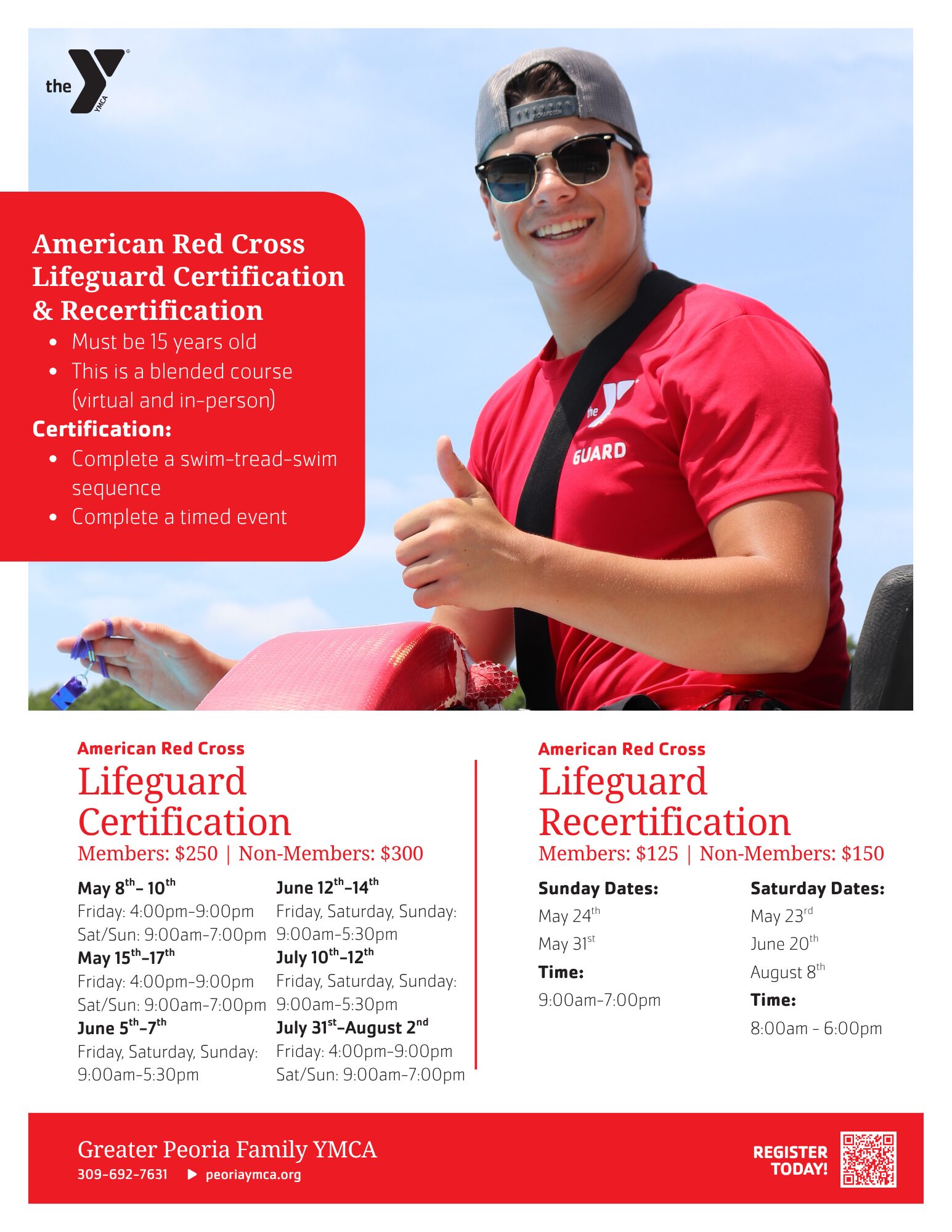 The American Red Cross Lifeguard Training course at the Y prepares participants with the skills and confidence needed to prevent, recognize, and respond to aquatic emergencies. Through hands-on instruction, participants learn water rescue techniques, CPR/AED, first aid, and teamwork—building the knowledge needed to keep others safe in and around the water.